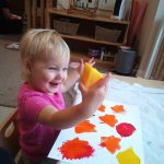 Ladybirds, with Autumn approaching, ladybirds have been creating autumn pictures, using autumn colours. Exploring sponges and leaves